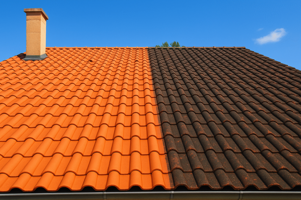 Traitement anti-mousse et nettoyage complet pour prolonger la durée de vie de votre toiture.